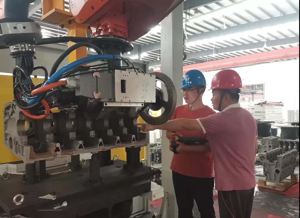 2019年蕪湖埃華路向印度出口柔性機(jī)器人打磨生產(chǎn)線,用于世界知名工程機(jī)械品牌6缸、12缸大型發(fā)動機(jī)缸體、缸蓋及殼體的打磨,獲得了印度客戶的充分認(rèn)可。