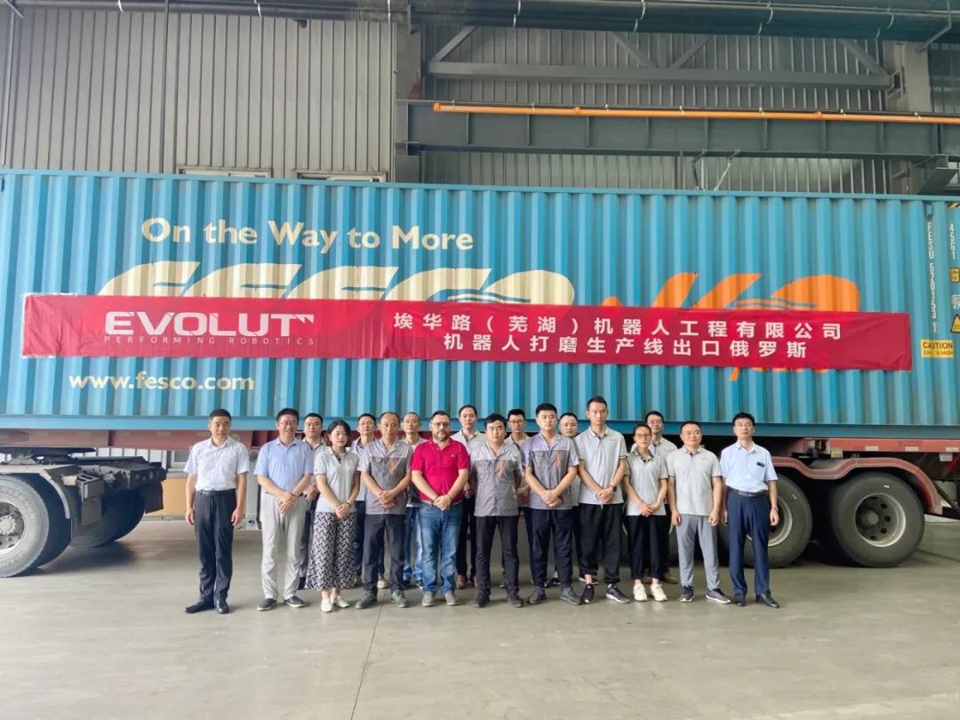 2021年7月6日,“打磨專家,埃華路” EV500機(jī)器人柔性打磨系統(tǒng)出口俄羅斯發(fā)貨儀式在埃夫特隆重舉行。埃夫特董事長許禮進(jìn),埃夫特總經(jīng)理兼CTO游瑋博士,埃夫特副總經(jīng)理曾輝,蕪湖埃華路副總經(jīng)理胡國棟以及蕪湖埃華路項(xiàng)目核心骨干出席發(fā)貨儀式,共同見證這歷史性一刻!